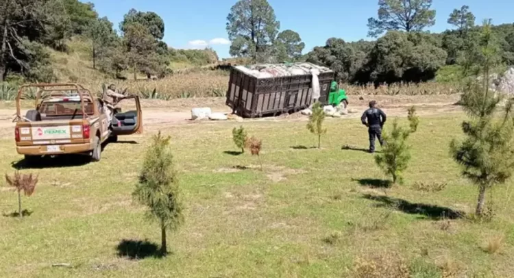 Dos pipas de gas LP fueron aseguradas en zona de ductos de Nanacamilpa, Tlaxcala. Las unidades fueron camufladas con material reciclado.