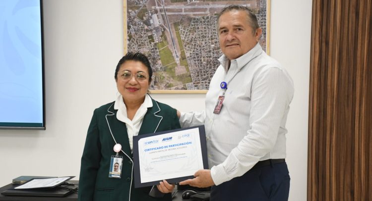 En el marco del mes de sensibilización sobre el cáncer de mama, el Aeropuerto Internacional de Mérida “Manuel Crescencio Rejón”, en coordinación con el Instituto Mexicano del Seguro Social (IMSS) y CIFAL Mérida / UNITAR, realizó el taller “Educación para la detección oportuna del cáncer de mama”, con el objetivo de fomentar la autoexploración y promover la atención oportuna de la salud entre las colaboradoras y colaboradores de la comunidad aeroportuaria.