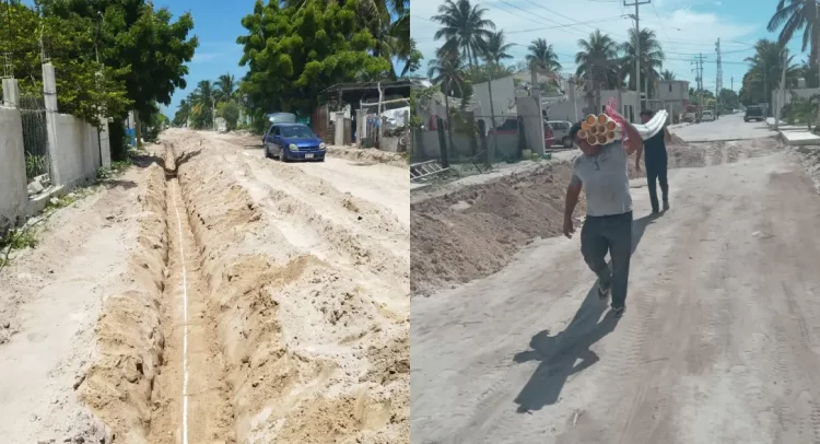 En el caso de Chicxulub Puerto detalló que se realizan trabajos de rehabilitación de líneas sobre la calle 17, desde la 16 hasta la 4, interviniendo en calles blancas para reforzar la infraestructura existente y garantizar mejor presión y continuidad en el servicio.
