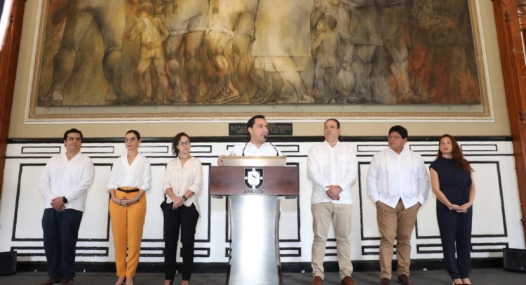 Desde el Salón de la Historia de Palacio de Gobierno, Vila Dosal indicó que se continuará con la distribución de apoyos alimentarios, cuya inversión de recursos superan los 18 millones de pesos para aliviar la economía de los hombres y mujeres de mar durante esta temporada.