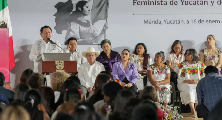 El mandatario recordó que, en 1916, más de 600 mujeres, en su mayoría maestras, se reunieron en el teatro Peón Contreras, en Mérida, para cuestionar la exclusión social y política que enfrentaban, sentando las bases del feminismo organizado en el país, en lo que calificó como “un parteaguas” histórico.