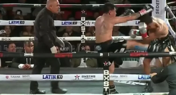 Un incidente inusual ocurrió en el Auditorio Municipal de Tijuana cuando el boxeador mexicano Ángel ‘Tashiro’ Fierro fue descalificado por darle una patada a su rival, Abraham ‘Bombi’ Cordero, durante el tercer asalto. La descalificación se dio tras una aparente reacción de ira del pugilista, quien estaba visiblemente descontrolado.