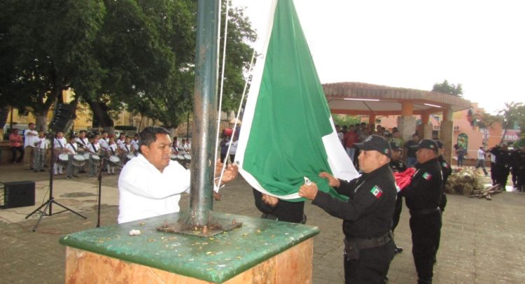 La ceremonia inicio con los honores a la bandera a cargo de la banda de guerra de la escuela primaria Jacinto Canek, que fue dirigida por el profesor Fernando Trujeque Várguez, mientras que la escolta de la policía municipal entregó el lábaro patrio al alcalde, la cual fue izada a toda asta.