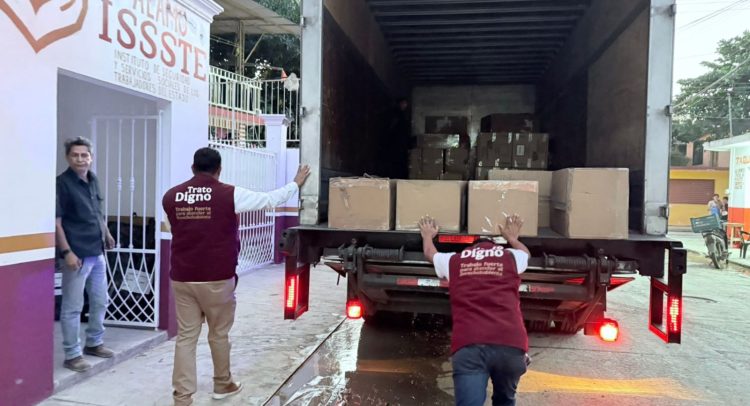 La institución distribuyó 600 pares de zapatos, además de sudaderas y pants, como parte de las acciones de respaldo impulsadas por su director general, Martí Batres Guadarrama, para atender a comunidades en emergencia.