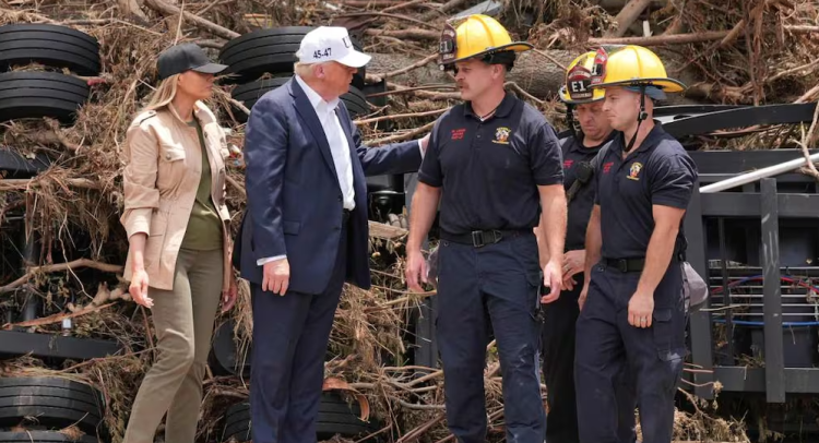 Trump y su esposa Melania realizan una visita de unas horas casi una semana después de la catástrofe, cuando todavía se busca a más de 170 personas dadas por desaparecidas.