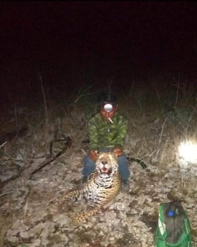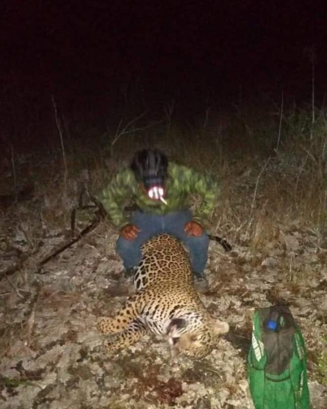 Por medio de las redes sociales, circulan unas fotografías donde se ve que dos cazadores furtivos asesinan presuntamente a un jaguar, ante las imágenes muchos usuarios pusieron quejas y expresiones de justicia para la especie felina, pues el animal corre el riesgo de la extinción, ya que está protegida al nivel nacional como internacional.
