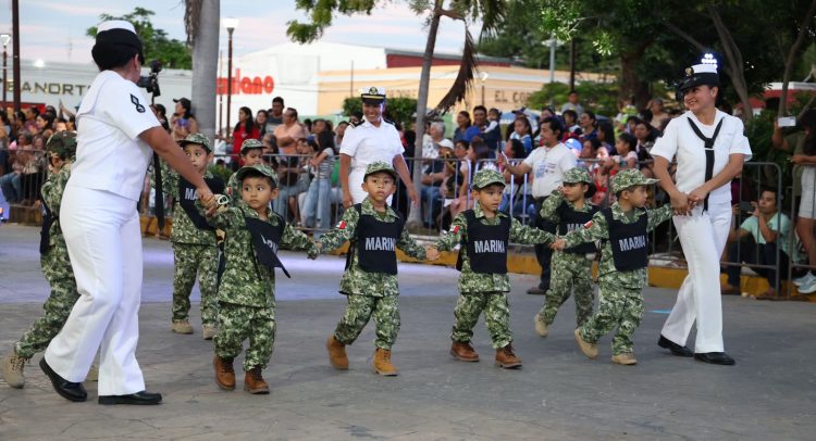 El desfile inició en el parque de las Madres y concluyó en el parque Independencia, con la participación de 18 planteles de educación preescolar, entre ellos el Centro de Desarrollo Infantil Naval de Yucalpetén. Sus contingentes destacaron por las representaciones alusivas a México, la Revolución y los símbolos patrios.