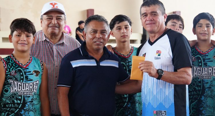 Asimismo, el presidente municipal refrendó su compromiso con el deporte al otorgar un apoyo económico al Club Jaguares en la categoría mini básquetbol (2013), que representará con orgullo a Tekax y a Yucatán en la fase nacional a celebrarse en Chihuahua del 21 al 24 de agosto.