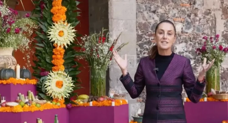 La presidenta Claudia Sheinbaum Pardo publicó ayer en su cuenta oficial de X, un video mostrando la ofrenda de Día de Muertos instalada en Palacio Nacional.