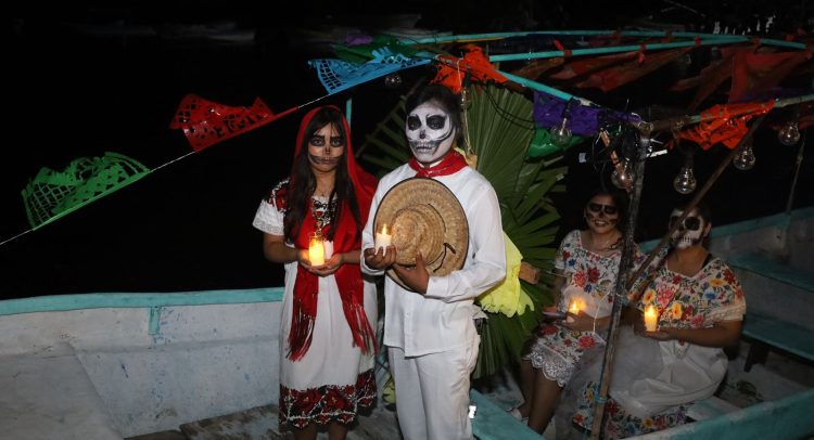 La jornada continuó con un festival artístico en el que se presentaron las Trovadoras del Mar y el ballet folclórico “Yumil-Ha” de Chelem. El evento culminó con un recorrido en lancha por la ría, donde alumnos del taller “Manos Creadoras” representaron el simbólico adiós a las ánimas, fusionando mar, tradición y memoria.
