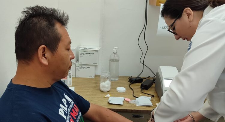 Con lo anterior, se buscó sensibilizar al paciente acerca de las complicaciones de un mal manejo de la Diabetes Mellitus tipo 2 y la Hipertensión Arterial; asimismo, se hicieron punciones capilares para detectar los niveles de azúcar y perfil de lípidos.
