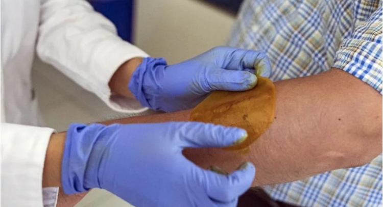 Dicho parche, hecho de un derivado de componente marino, se degrada en tres o cinco días una vez adherido a la piel y gracias su consistencia transparente permite monitorear la lesión de manera no invasiva.