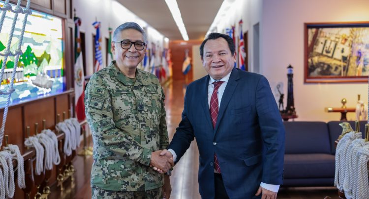 El gobernador de Yucatán, Joaquín Díaz Mena, y el Secretario de Marina (Semar), Raymundo Pedro Morales Ángeles, sostuvieron una reunión de trabajo para dar seguimiento a los avances en la ampliación del Puerto de Altura de Progreso y las labores de dragado en diversos puntos del litoral yucateco.