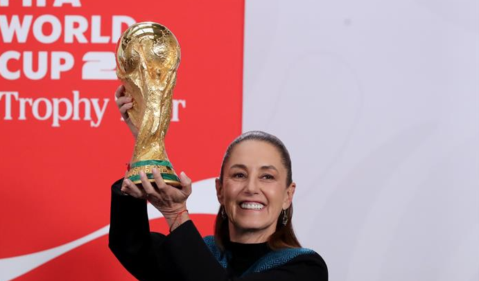 Precisamente cuando se inicia la cuenta atrás, la presidenta de México, Claudia Sheinbaum, mostró sonriente este martes el trofeo de la Copa del Mundo en su conferencia matutina.