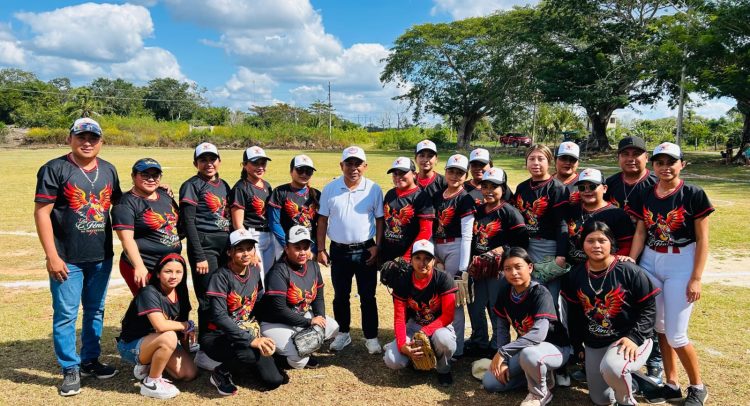 TEKAX.- El alcalde Manuel Vallejos reafirmó su compromiso con el deporte femenil y la sana convivencia al visitar la comisaría de Tixcuytún, donde presenció un encuentro amistoso de softbol entre las escuadras locales “Fénix” y las “Bravas” de Temozón (comisaría de Peto).