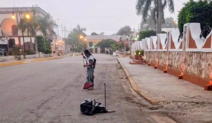 Su labor se extiende por el perímetro del mercado, el Palacio MuniciPal y el “Chulub de la Ermita”, el callejón de los murales, entre otros puntos emblemáticos del centro de la localidad.