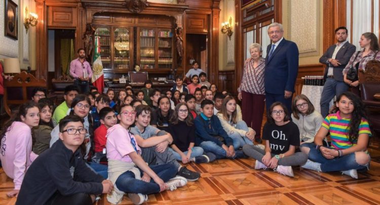 El presidente Andrés Manuel López Obrador informa en redes sociales que recibió en Palacio Nacional a alumnas, alumnos y maestras de la Escuela Manuel Bartolomé Cossío de la Ciudad de México (y escuela de su hijo menor). Al encuentro también asistieron estudiantes de la Escuela Experimental Freinet de San Andrés Tuxtla, Veracruz.