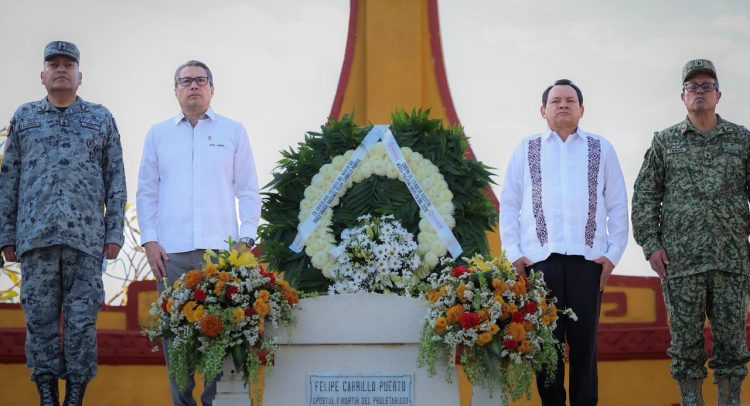 Acompañado de representantes de las fuerzas armadas y de autoridades municipales, el mandatario estatal subrayó que el nombre del Apóstol Rojo sigue presente, hablándole a la conciencia del pueblo de Yucatán.