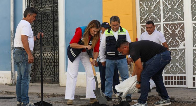 Posteriormente se trasladó a calles del centro, acompañada del director de Obras Públicas, Sergio Chan Lugo, donde supervisó y colaboró en los primeros trabajos de esta medida extraordinaria que impactará de manera positiva en el mantenimiento de las vialidades.