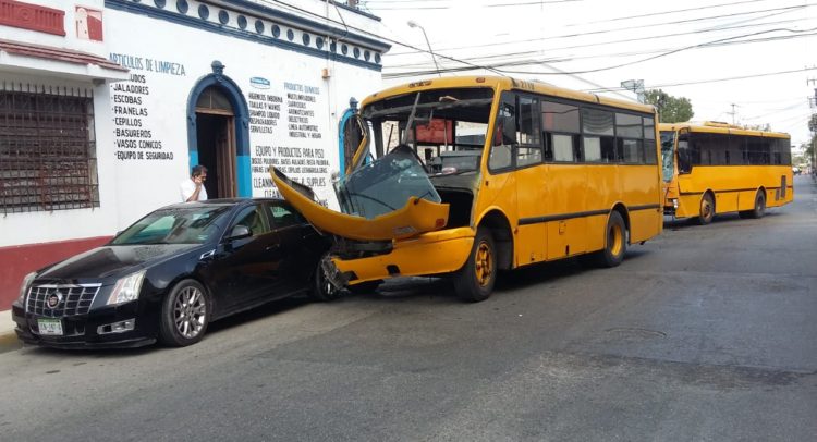 De acuerdo con datos obtenidos, una de las unidades (placas A-03793-Z) circulaba sobre la 41 en dirección de oriente a poniente, pero al llegar a la 62 no respetó la señal de tránsito, ocasionando que se le impactara de lleno otro autobús (A-03350-7) de la misma compañía.