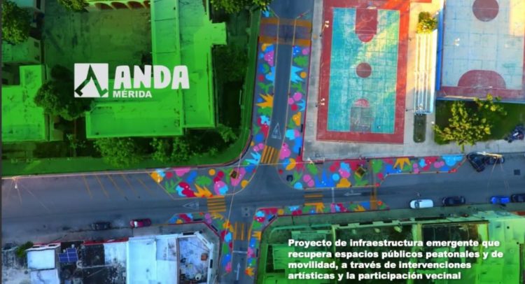 El Proyecto de infraestructura emergente, ANDA Mérida, se caracteriza por recuperar espacios públicos apoyándose en la intervención artística y con la participación de los vecinos, quienes a través de dispositivos de consulta que durante 54 dias aplicaron los integrantes del “Colectivo Tomate”, expresaron su sentir, necesidades y sugerencias, que terminaron plasmadas en las obras que se realizaron en la zona que incluyen dos intervenciones viales y cinco murales en la que se plasma la identidad del barrio y tres juegos mobiliarios urbanos en los que se exhiben macetas que los propios vecinos se han comprometido a cuidar.