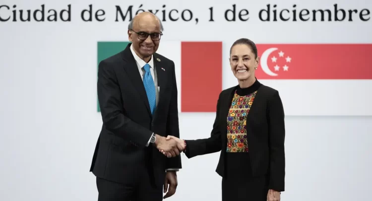 La presidenta de México, Claudia Sheinbaum, y su homólogo de Singapur, Tharman Shanmugaratnam, reforzaron este lunes la relación bilateral en una visita de Estado, que coincidió con el quincuagésimo aniversario del establecimiento de relaciones diplomáticas y durante la cual ambos gobiernos anunciaron la apertura de la primera embajada residente de Singapur en un país hispanohablante.