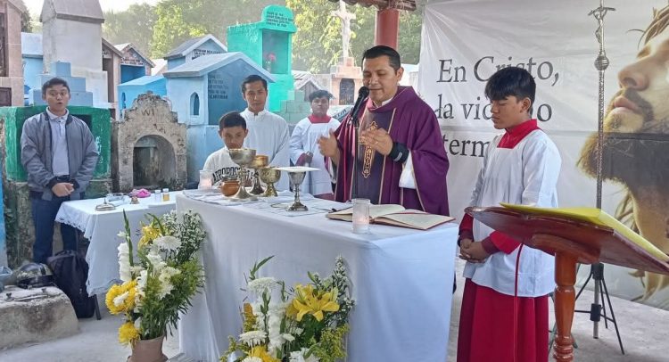 En la mañana del domingo 2 de noviembre se realizó la tradicional misa en honor a los fieles difuntos en el cementerio municipal de Oxkutzcab, el presbítero Saúl Abraham Che Chi expresó el mensaje: “Cada nombre, cada tumba, cada recuerdo nos habla del amor que permanece más allá del tiempo. No celebramos la ausencia, sino la certeza de que la vida no termina, sino que se transforma. Pedimos al Señor que conceda a nuestros hermanos difuntos la luz perpetua y la paz eterna, y a nosotros, la gracia de mantener viva su memoria en obras de amor, servicio y esperanza”, leyó el sacerdote.
