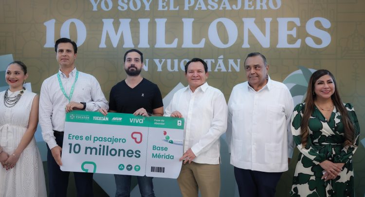 “No me esperaba que fuera el pasajero 10 millones, muy grato, en mi caso vine para conocer y me habían hablado bien de la ciudad de Mérida, ir a conocer los cenotes y las pirámides, Las Coloradas y comer la cochinita”, dijo el regio, quien fue recibido por representantes de la empresa y el gobernador Joaquín Díaz Mena.