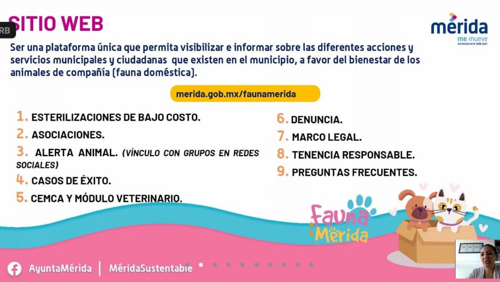 En el Sitio Web Mérida.gob.mx/faunamerida se puede acceder a las acciones, actividades y servicios que en la materia ofrece el Ayuntamiento como la ciudadanía a través de especialistas, médicos veterinarios y refugios que operan las asociaciones civiles.