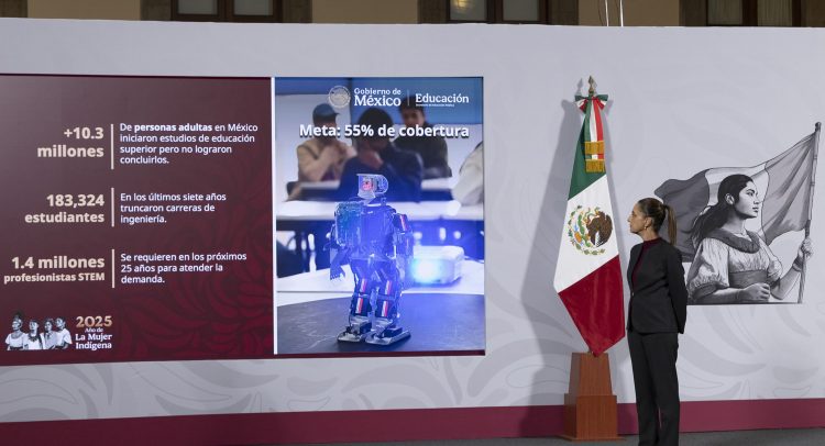 Detalló que se estima llegar, potencialmente, a las 10.3 millones de personas que no concluyeron su educación superior, así como 183 mil 324 ingenieros con carrera trunca, lo que se suma a la meta de cobertura de 55 por ciento de espacios físicos en la educación superior.