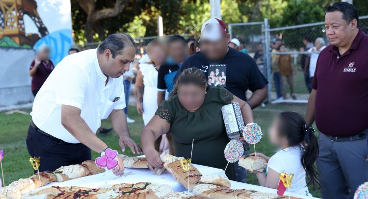 El corte de la rosca estuvo a cargo del subsecretario de Prevención y Reinserción Social, Miguel Ángel Trujillo Ortiz, quien saludó a las familias reunidas en el campo deportivo y les deseó un feliz año, acompañado por la directora del Centro para Prevenir y Eliminar la Discriminación en el Estado de Yucatán (Cepredy), Vivianne de Cervantes Eng-Jim; y los jefes de departamento del Cereso, Andrés Rosado Quintal, Josué Euán Novelo y Alejandro González Zetina.