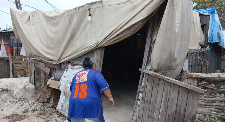 “En las madrugadas el frío cala los huesos, no se soporta, aunque te tapes y te abrigues”, comentó doña Elidé, quien junto con su esposo don Edgar, ambos adultos mayores, habitan una vivienda de láminas de cartón, cubierta con una enorme y gastada lona que deja pasar el viento frío.