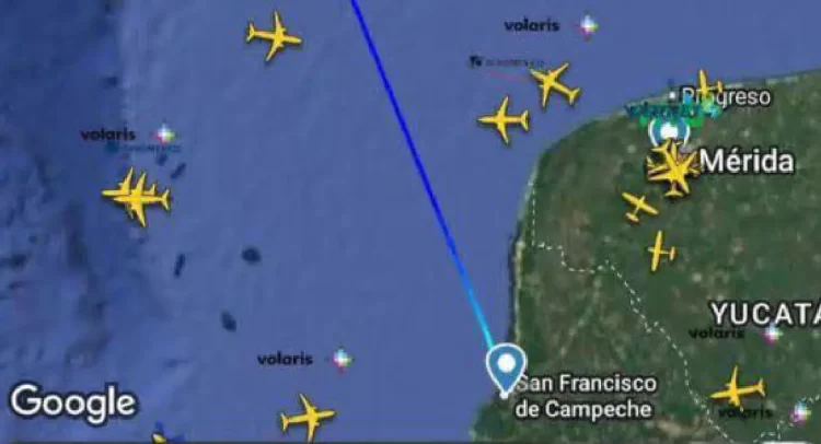 Los registros indican que la aeronave despegó de Campeche para realizar maniobras sobre aguas internacionales. La información coincide con el aterrizaje de un transporte militar estadounidense este domingo en la terminal de Campeche.