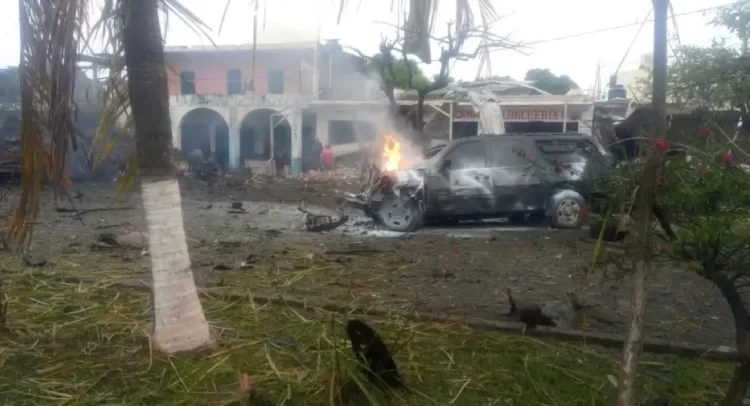 La explosión en Coahuayana, Michoacán, provocó severos daños en al menos diez inmuebles, varios con locales comerciales, así como en una decena de vehículos que se encontraban estacionados en la zona.