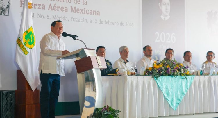 El gobernador Joaquín Díaz Mena presidió la conmemoración del CXI aniversario de la Fuerza Aérea Mexicana, realizada en la Base Aérea Militar número 8, donde reconoció la labor, el profesionalismo y la coordinación de esta institución en favor de la seguridad, la paz y la atención a emergencias en Yucatán y en el país.
