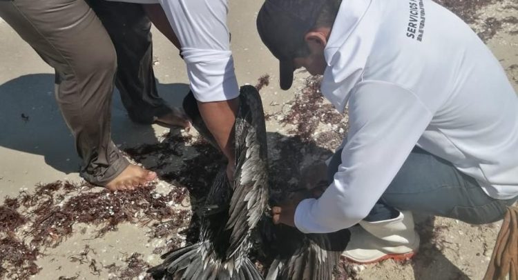 El Ayuntamiento de Progreso, encabezado por el alcalde Erik Rihani González, atendió a través del canal de atención ciudadana Muni el reporte de un pelícano que se encontraba enredado con cordeles y anzuelos en la zona de playa de Chelem, a la altura de la calle 15 por 136.
