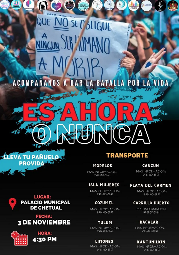 Debido a lo mencionado, se calcula que se serán un poco más de mil personas, quienes ya se habían manifestado por el derecho a la vida, el lunes pasado en la capital de Quintana Roo y, aunque se pensaba que el número de participantes podría ser mayor, al ser un día hábil, muchas ciudades solo pueden movilizarse por las tardes, dijo Stephany Torres.