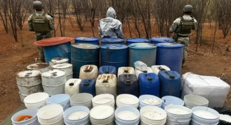 Agentes de la Guardia Nacional, en coordinación con personal del Ejército mexicano, inhabilitaron un laboratorio clandestino para la elaboración de drogas sintéticas en Mocorito, Sinaloa, sitio en donde fueron asegurados 170 kilos de metanfetamina.