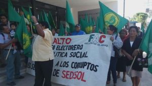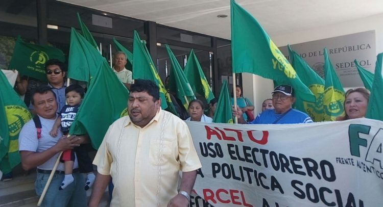 Se lleva a cabo una jornada nacional de protestas y movilizaciones en todo el país y afiliados a la Unión Nacional de Trabajadores Agrícolas encabezados por su líder en Yucatán, Guillermo Cauich Durán, quienes realizaron esta mañana un plantón a las puertas de Sedesol Federal.