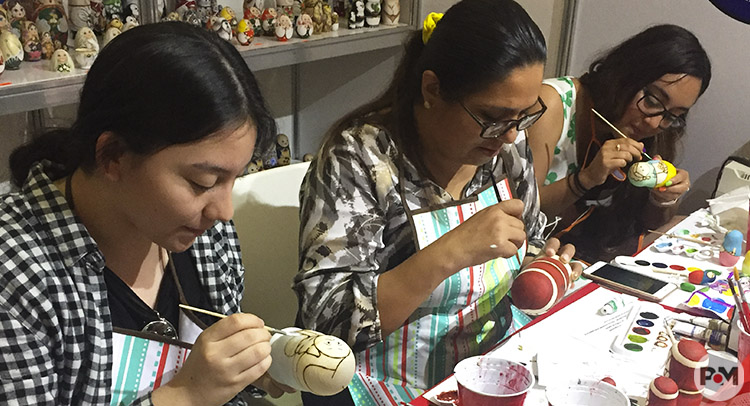 Durante la visita del equipo de Punto Medio al stand que ocupan en el centro de Convenciones Yucatán Siglo XXI, se pudo apreciar a varias personas pintando sus “Matryoshkas” prediseñadas.