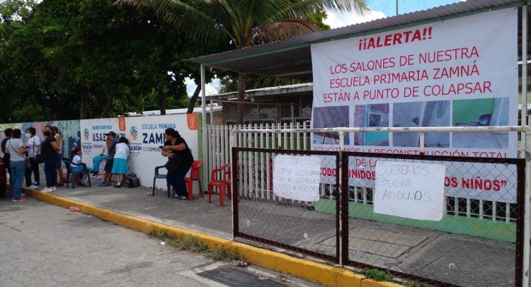 Ayer fue el último día de clases en la primaria “Zamná” de la colonia Cordemex, donde los padres de familia demandaron la intervención de las autoridades para atender temas de mantenimiento para el plantel, que tiene 54 años de antigüedad y que, afirman, presenta daños estructurales.