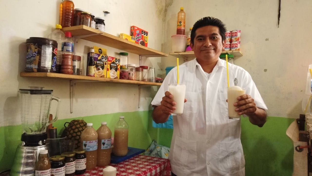 Y con este ambiente, mucho se antoja para refrescarse el disfrutar de un sabroso helado de coco, y en Maxcanú hay un lugar en el que se conserva como un preciado tesoro la receta para elaborar champolas, helados y otros productos que tienen como base los concentrados que la familia Moo prepara bajo la marca “El Abuelo Cheto”, como la famosa horchata de coco.
