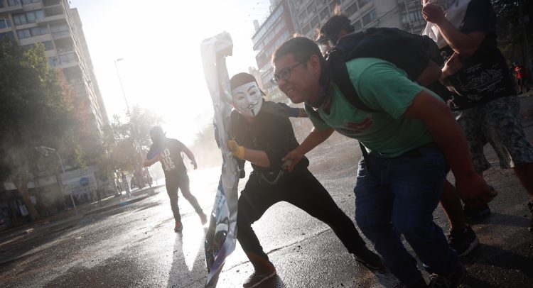 La violencia y los desmanes protagonizaron las protestas de ayer en Chile, jornada en la que cientos de los indignados más radicales ampliaron su radio de acción hacia zonas más acomodadas de la capital del país y vandalizaron bancos, comercios y mobiliario público.