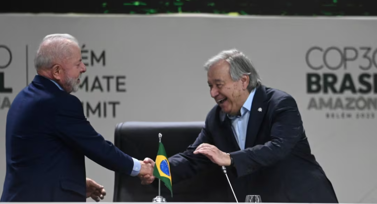 Dos poderosos actores globales presionaron este miércoles a los negociadores para que alcancen acuerdos en las conversaciones climáticas de las Naciones Unidas en Belém, Brasil, donde está por cumplirse un plazo autoimpuesto. El secretario general de la ONU, António Guterres, recorrió las salas de reuniones, mientras que el presidente brasileño, Luiz Inácio Lula da Silva se unió a las conversaciones de la COP30 este miércoles por la mañana. “La llegada del presidente Lula y António Guterres es enormemente significativa y sugiere que los anfitriones piensan que deberíamos aprobar algún tipo de acuerdo”, indicó Mohamed Adow, de la organización ambiental keniana Power Shift Africa. “No suele ocurrir que el presidente participe en las conversaciones a mitad de la segunda semana sin tener algo que mostrar”, agregó. Guterres se reúne con los indígenas brasileños El secretario general de la ONU se reunió este miércoles con líderes indígenas brasileños para escuchar las reivindicaciones que les llevaron a protestar durante la cumbre climática COP30, que se desarrolla en Belém, en plena Amazonía. La principal reivindicación fue la necesidad de garantizar sus derechos de propiedad sobre sus tierras a través de los procesos de titulación de las mismas, según un comunicado difundido por la ONU. Dinamam Tuxá, coordinador ejecutivo de la Articulación de los Pueblos Indígenas de Brasil (APIB), principal organización de los pueblos originarios del país, afirmó que la protección de las tierras es una “responsabilidad global”. “El mundo debe reconocer verdaderamente nuestro cuidado de los territorios indígenas como una solución a la crisis climática. Nuestras tierras y nuestras formas tradicionales de gestionarlas deben ser reconocidas”, afirmó Tuxá, según el comunicado. La presidenta del Foro Internacional de los Pueblos Indígenas sobre el Cambio Climático, Sinéia do Vale, afirmó que la demarcación de diez territorios indígenas es “posiblemente” la mejor noticia de la COP30. Los indígenas han protestado en la COP30 por la lentitud en los procesos de protección de sus tierras y también, contra proyectos gubernamentales, como la prospección de petróleo en la Amazonía y la construcción de una línea de ferrocarril cerca de tierras indígenas y que se destinará a la exportación de soja. En la COP30, 35 países y organizaciones filantrópicas se comprometieron a aportar 1,800 millones de dólares durante los próximos cinco años para impulsar la titulación de tierras para los pueblos indígenas, los afrodescendientes y las comunidades locales.