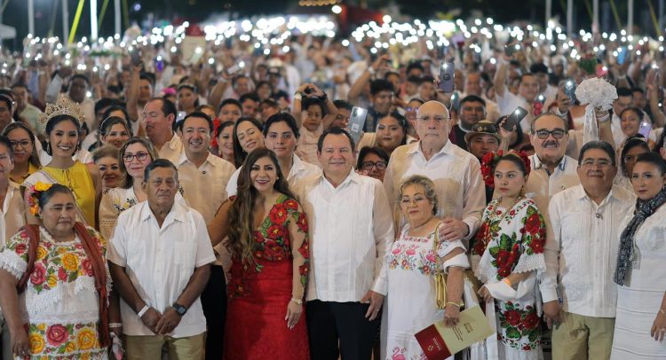 El titular del Ejecutivo estatal felicitó a las y los recién casados, ya que demuestran que las familias yucatecas se construyen con respeto, cariño y con la decisión valiente de unir sus vidas. “Este momento que están compartiendo con nosotros toca el corazón de todo Yucatán, porque es un recordatorio de que el amor, cuando es verdadero, siempre busca crecer, proteger y construir. Muchos de ustedes ya han compartido parte de su vida juntos, han criado hijos, han superado dificultades, pero hoy, al firmar ese compromiso, le dan a su amor la certeza jurídica que merecía desde hace tiempo”.