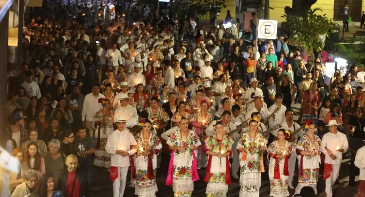 Durante el recorrido, más de 200 participantes, entre autoridades, trovadores e invitados, portaron con orgullo el traje regional y flores o velas, mientras los tríos de las asociaciones “Guty Cárdenas”, “Pastor Cervera”, “Armando Manzanero” y “Pepe Domínguez” entonaban canciones que evocan el alma de Mérida.