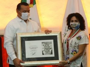 “Esta magia de la representación teatral nos ayuda a ser felices en días tan aciagos como los que ahora estamos viviendo con la pandemia”, recalcó el munícipe quien calificó a la recipendaria como “heredera de la escuela de la yucataneidad de Titeradas”.