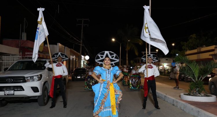 El alcalde Erik Rihani González y cientos de porteños presencian un desfile de escaramuzas y charros; también viven un festival artístico en el que la música mexicana se hace presente