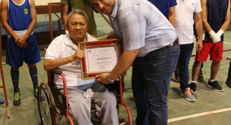 Por sus años de trabajo y trayectoria en el box, así como la formación de campeones en esa disciplina, el entrenador Mendieta Polanco recibió de manos del alcalde, Enrique Ayora, un reconocimiento a su labor.