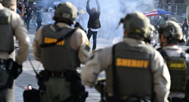 En respuesta, una multitud salió a manifestarse en contra de estas detenciones, pero la tensión aumentó cuando Trump ordenó el despliegue de 4,000 efectivos de la Guardia Nacional para tratar de repeler las protestas y tratar de custodiar y salvaguardar los edificios federales.